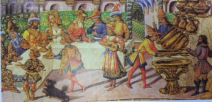 (위) 아카데미아 플라토니카의 산실인 이탈리아 피렌체의 카레지 별장(위)에서는 매일같이 인문학자들의 열띤 토론이 이어졌다. 아폴로니오 디 조반치가 1460년에 그린 세밀화(아래)에는 비아 라르가의 메디치 저택에서 벌어지는 축제가 잘 묘사되어 있다. 이들은 지적 향연을 통해 한 국가의 미래는 물론, 인류사적 등불을 환희 밝혔다. Source: photo by wikipedia