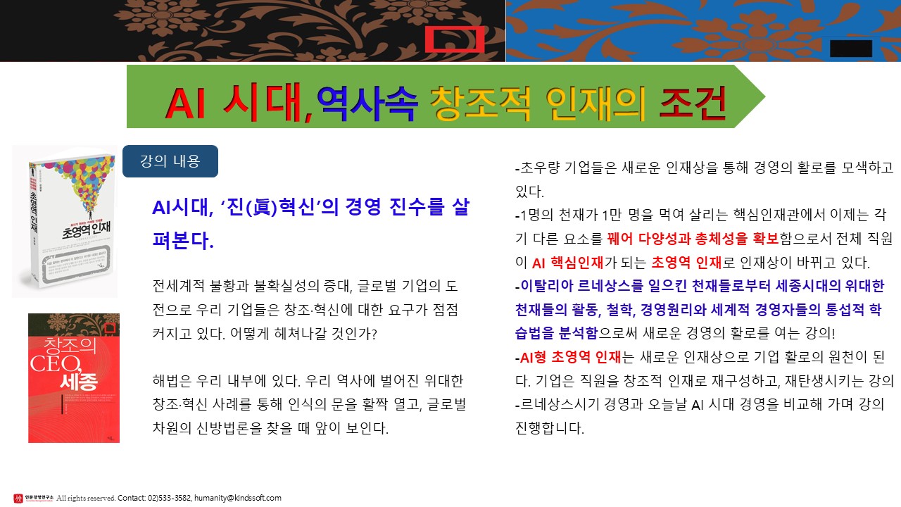 600년전 우리 역사에 나타난 AI 방식의 경영 혁신 사례를 살펴보는 강의입니다.