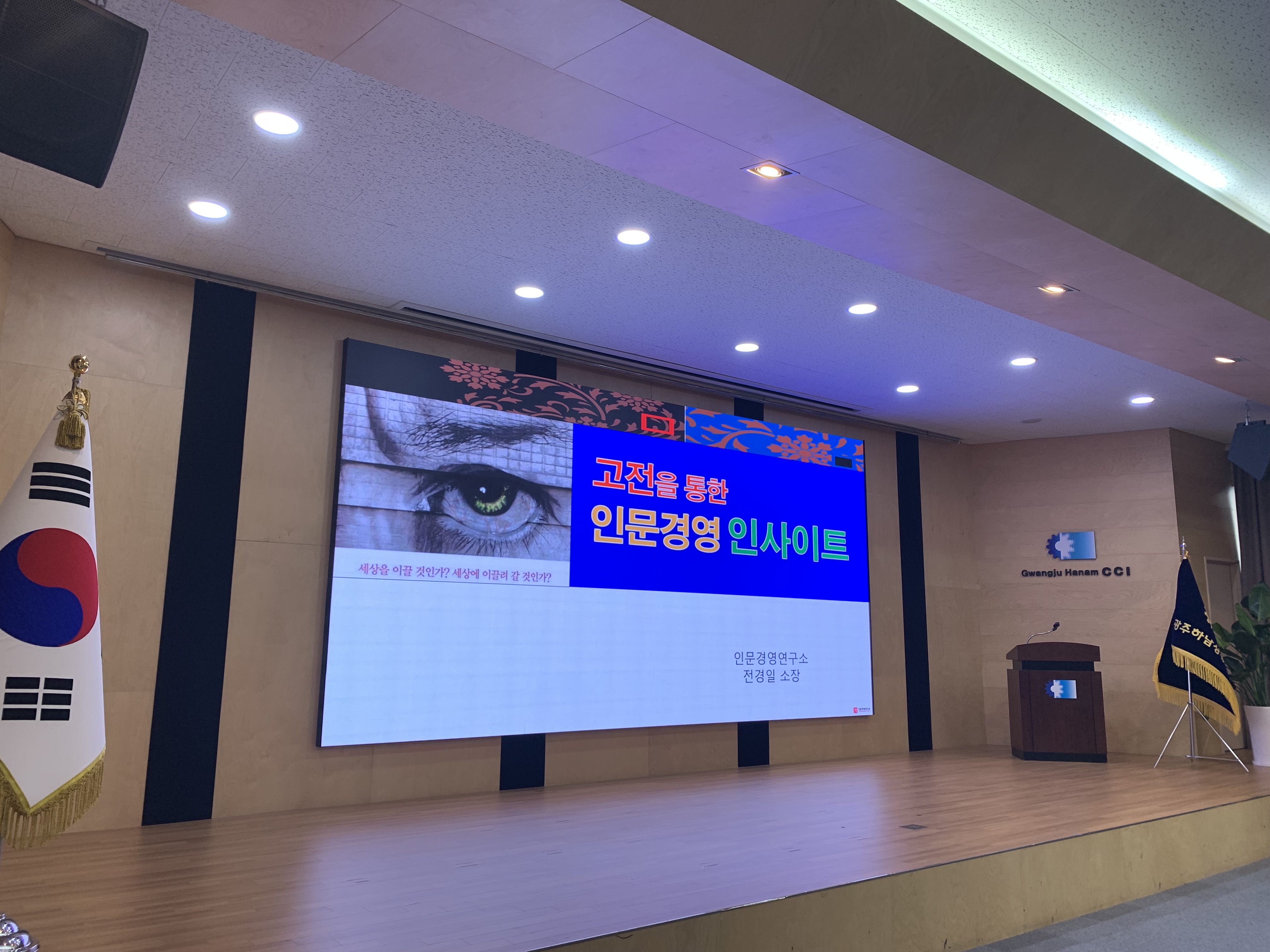 광주하남상공회의소CEO 아카데미에서 <고전을 통한 인문경영 인사이트> 강의를 했습니다. 경영 현장에서 남들은 보지 못하는 차원 다른 목표를 보는 법을 인문적 사례를 통해 전달했습니다.
