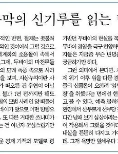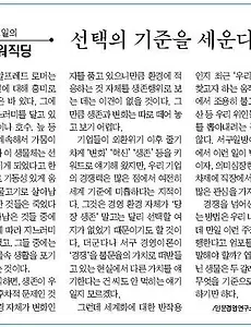 인문경영연구소286 사막의 신기루를 읽는 법 (전경일의 파워 직딩) 출처: 메트로 서울 12.3(목) 연재 2009. 12. 3. 오늘을 헌 날로 보낼까, 새 날로 맞이 할까는 전적으로 자신의 의지에 달려 있다 사업하는 지인 사무실을 들렀다가 사무실 한켠에 걸려 있는 사훈을 우연히 훑어보게 되었습니다. “날마다 새로운 날은 다 좋은 날, 더 이상 헌 날이 아니면 다 좋은 날.” 어느 회사의 슬로건과도 비슷해 보이는 글귀를 보며 저는 잠시나마 사념에 빠져들었습니다. 나는 얼마나 많은 날들을 새롭게 받아들이고 있는가? 직장인이란 이름으로 타성에 젖지 않고 날마다 새로운 날을 맞이하고 있는 걸까? 아니면 새날조차 헌날로 환치시키며 퇴행적 일상을 살고 있을까? 오늘도 어제와 같고, 내일과 다를 바 없을 거라고 착각하며 살고 있는 것은 아닌지 돌아보았습니다. 때로 주변에서 ‘새날’과 ‘헌날’을 혼동하며 살고 있는 사람들을 보면 답답함을 넘어 측은함마저 입니다. 혹여 그들 눈에 제 자신이 영락없이 같은 꼴로 비춰지는 것은.. 2009. 11. 25. [언론보도] 영역 파괴해야 인재(이코노미스트) 2009. 11. 20. 선택의 기준을 세운다는 것 (전경일의 파워 직딩) 출처: 메트로 서울 11.19(목) 연재 2009. 11. 20. 네가 지닌 가장 큰 힘은 과거에는 누구도 생각하지 못한 상상력이어야 한다 심리학을 전공하는 한 대학교수 친구와 차를 마시게 되었습니다. 제가 그 친구에게 최근 나의 근황을 말했습니다. 생활을 보다 단촐하게 하고, 음주를 줄이고, 내 몸을 금과옥조로 대하며 늘 컨디션을 쾌적한 상태로 유지하니까 모든 게 좋아지더라고요. 특히 예전에 밀쳐 두었던 다른 분야의 책을 꼼꼼히 읽다보니 머리가 맑아지며 사물을 바라보는 관점도 달라지는 것 같더라고요. 그랬더니 그 친구는 의도적으로 자신을 낯설게 하기, 새로운 관심사에 눈 돌리기, 다양한 사물을 순열과 조합을 통해 새롭게 꾸며보기 등을 하는 것이 머리를 맑게 해주는 것은 물론, 창의적으로 만들어 준다고 일러주더군요. 물론 일상에서 벗어나 새로운 시각을 갖게 만든다고요. 늘 같은 일상에서 조금 떨어져 보는 것은 정신적으로도 매우 좋은 생활법이.. 2009. 11. 20. 회사는 수많은 콩 중에서 어느 콩이 킹콩인지 늘 골라내는 작업을 하고 있다는 점을 알아야 한다 제가 우리 부서에서 일할 파견직 직원의 면접을 보았을 때의 일입니다. 그 직원의 자기소개서에는 이런 말이 써져 있었습니다. “어떤 콩은 콩나물이 되고, 어떤 콩은 콩나무가 됩니다.” 그 문구를 접한 순간, 저는 정말 좋은 말이로구나, 하고 감탄했습니다. 물론, 그 응시자를 다시 쳐다보게 되었죠. 여러 가지 이유로 응시자는 합격의 행운을 누리지는 못했지만, 저는 그런 생각을 갖은 젊은이라면 무슨 일이든 훌륭하게 해 낼 거라는 확신이 들었습니다. 아마도 그 응시자는 가장 보편적인 직원 속에도 하늘까지 가 닿는 인재가 될 것입니다. 그런 가능성을 그 피면접자는 드러내고 싶었던 것 아닐까요? 그 후에 저는 비비안 프렌치가 쓴 이란 동화에 나오는 ‘콩 나무’에 대해 생각해 보았습니다. 소를 팔고 오라는 어머니의 .. 2009. 11. 20. 이전 1 ··· 27 28 29 30 31 32 33 ··· 48 다음