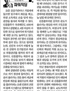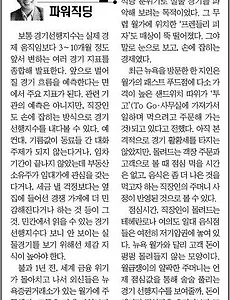 전경일430 진정한 도전과의 만남을 추구하라 해변의 어린이가 조그마한 재미와 작은 파도에 신경을 쓰고 있다가 갑자기 밀어닥친 해일에 휩쓸린 후 사라졌다 바람이 강하면 칠면조도 날 수 있다. 그러나 바람이 변덕스러워지면 독수리만이 날아 오를 수 있다 현재처럼 한치도 확실하게 앞을 내다볼 수 없는 변화의 시기에는 한번 발을 잘못 디디면 사실상 살아 나오기가 불가능하다. 마치 개미귀신의 함정에 걸려든 불운한 곤충 같은 신세가 되어 버린다. 불확실한 환경의 변화는 한번의 실수도 용납하지 않는 벼랑 끝으로 개인과 기업을 내몰고 있다. 세계 금융 위기라는 1929년 대공황 이후 최대의 사건은 새로운 경제 시스템에 대한 담론을 요구하고 있다. 궁극적으로 변화는 전세계적 파고라는 얘기다. 이제 ‘안전구역’이란 없다. 설령 있다고 해도 그것은 항상 안전한 것도 아.. 2009. 9. 17. [메트로/전경일의 파워직딩]9월17일 매주 목요일 메트로신문을 통해 직접 만나보세요. 2009. 9. 17. [메트로/전경일의 파워직딩]9월10일 매주 목요일 메트로신문을 통해 직접 만나보세요. 2009. 9. 17. [메트로/전경일의 파워직딩]9월3일 매주 목요일 메트로신문을 통해 직접 만나보세요. 2009. 9. 17. 사무실 온도가 너무 올라갑니까? (전경일의 파워 직딩) 출처: 메트로 서울 09.09.10(목) 연재 2009. 9. 16. 메밀꽃 피는 동네 메밀꽃 피는 동네 국민학교 6학년 때의 일이다. 내게는 영수라는 친구가 있었다. 우리는 머잖아 중학생이 될 거라는 막연한 기대와 설렘 속에서 마지막 학기를 보내고 있었다. 담임선생님은 때로는 중학교 생활에 대해 이것저것 얘기해 주곤 했는데, 어떤 아이들은 중학교에 가게 되면 영어를 배운다는 얘기에 이미부터 알파벳을 외우거나, 읽기도 했다. 그런 녀석들은 공책에 알파벳을 적어가며 은근히 자랑하는 눈치였다. 영수는 공부를 썩 잘해 중학교 진학에는 아무런 문제가 없었다. 하지만 정작 녀석은 진학 얘기가 나오면 교실 뒤편에 앉아 고개를 푹 떨군 채 아무 말이 없었다. 선생님은 쉬는 시간이면 녀석을 불러 설득하곤 했다. “진학을 안 하면 뭘 하려고 그러니? 아버지께 말씀 드려서 꼭 중학교는 가도록 해라.” 하지만.. 2009. 9. 16. 이전 1 ··· 37 38 39 40 41 42 43 ··· 72 다음
